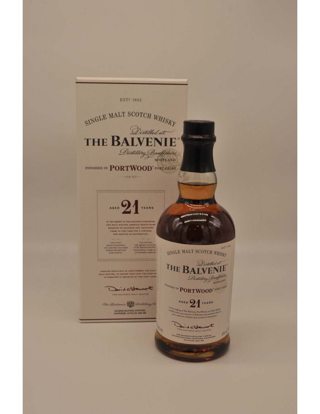 The Balvenie 21 ans Port Wood Finish est vieilli dans des fûts de second remplissage. Ce single malt termine sa maturation pendant 12 mois dans de vieux fûts de Porto ayant contenu des Tawnies.