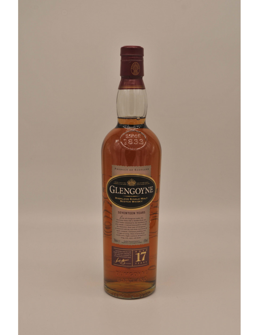Glengoyne 17 ans des Highlands du Sud, a vieilli dans une proportion généreuse de fûts de Xérès de premier remplissage. Ce Single Malt a des notes de vanille épicées et de pommes mûres. En bouche, il est riche et luxueux.